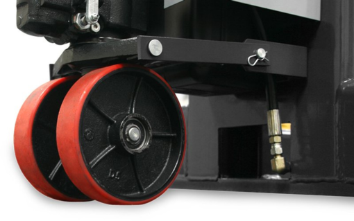 • Pallet-jack style steering wheels enable the columns to be lowered firmly on the floor vs. constantly loaded spring-type steering wheels that can cause columns to roll when unladen by the weight of a vehicle