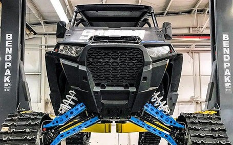 The XPR-12CL is our closed-top model. A closed-top model offers clearfloor convenience, as it runs hydraulic lines up and out of sight, but it may not fit taller vehicles. A closed-top/clearfloor two-post lift allows two technicians to easily move toolboxes, transmission jacks, oil drains and other equipment underneath the elevated vehicle.